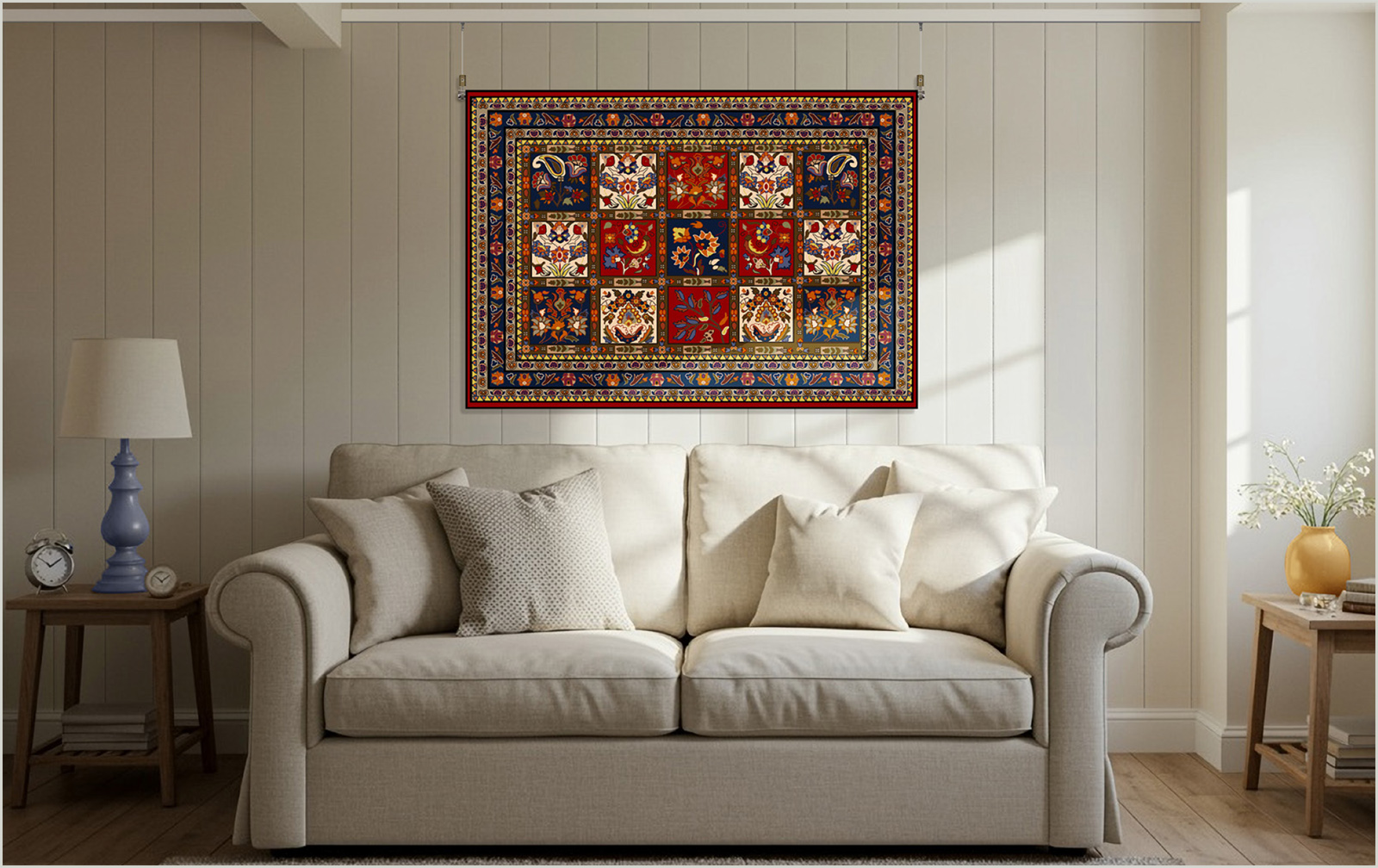 Loosen the screw with the included Allen key. Feed the end of the hanger through the hook body, slide to the desired position, then tighten securely. Attach the hook to your rod, threaded neatly through the pockets on your quilt—ready to display with confidence.