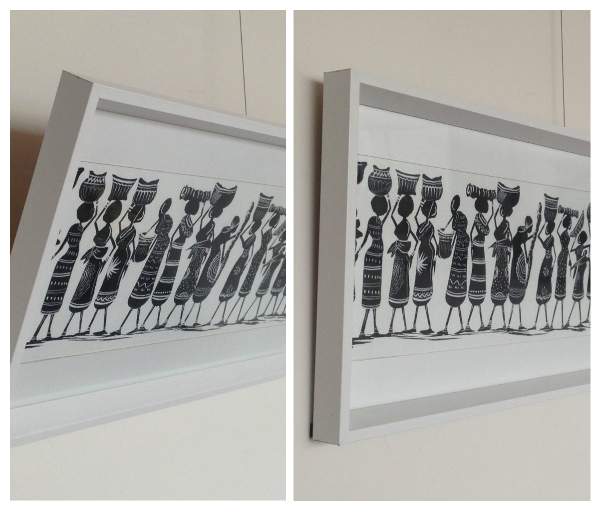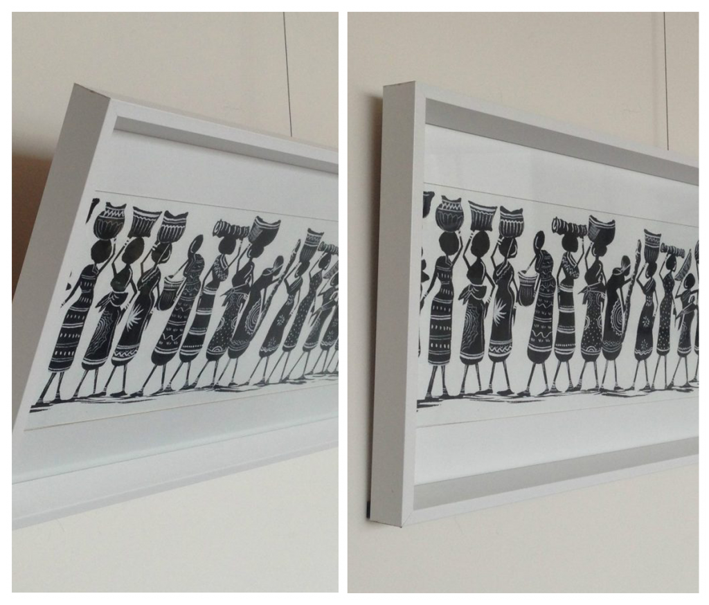 Simply fit the HangRight Clips to the back of your picture frame, insert the hanger behind the clip and your picture will sit closer to the wall. Whilst the results will vary, it was found the HangRight Clips reduced the forward lean of most pieces by a minimum of 50% (when measured from the back of the piece to the wall).