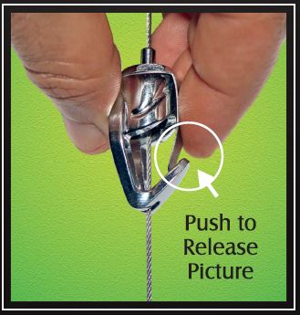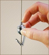 For the added peace of mind to help avoid snatch and run art theft, these hooks are the perfect solution. The cable behind your art is captive behind the metal security latch. The thief will need to take time to release the cable (if they know the secret!) before they can steal the art.