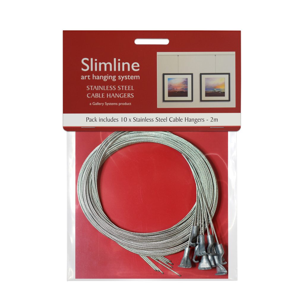 Slimline Stainless Steel Cable Hangers come in packs of 10 x 2m lengths. These hangers conveniently fit into your Slimline track at any point along the length of track. You then thread your adjustable hook onto the cable and hang your picutre. It is that simple?