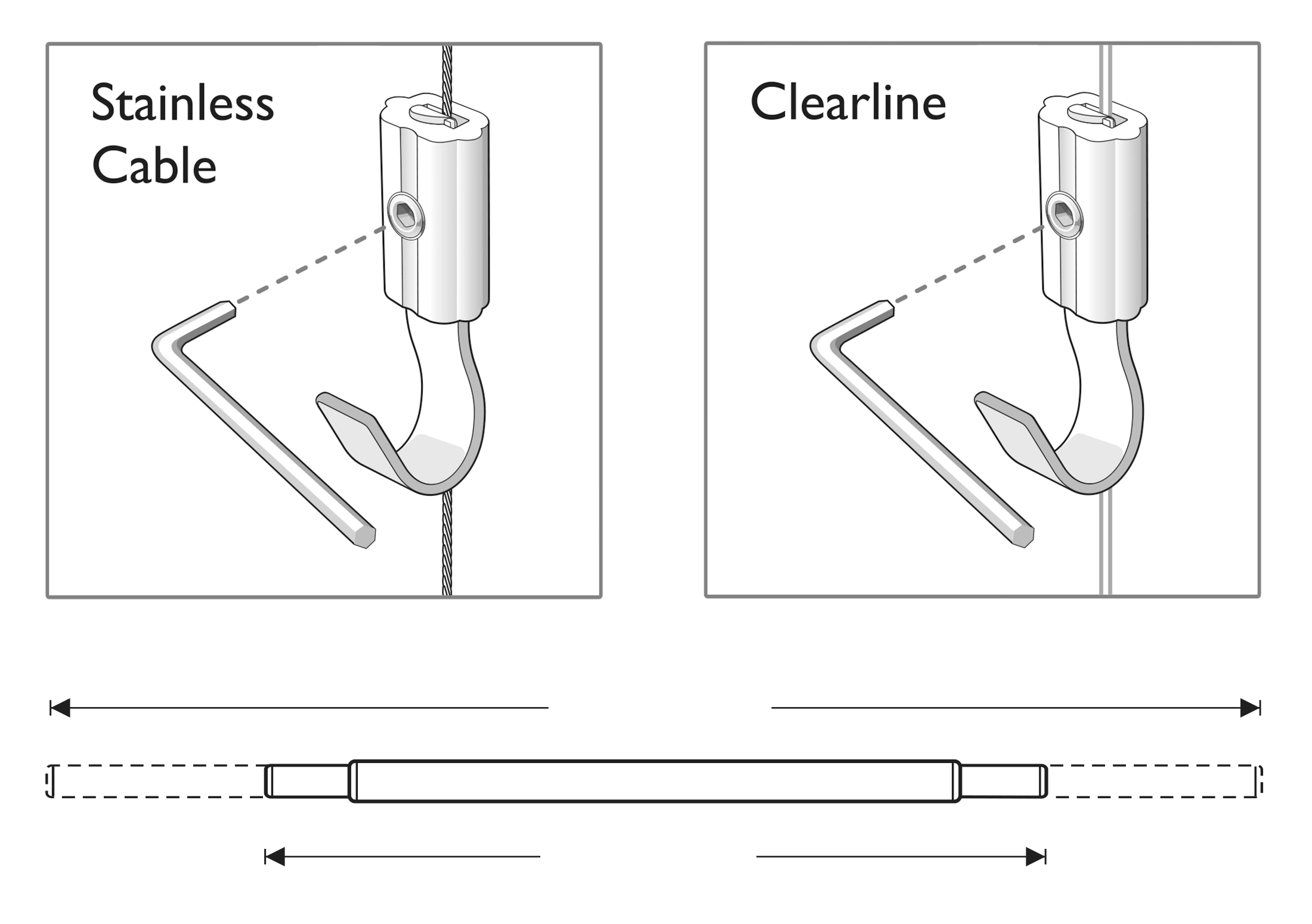 Built for dependable performance, each hook supports up to 6kg (13 lbs) on both Stainless Cable and Clearline hangers.