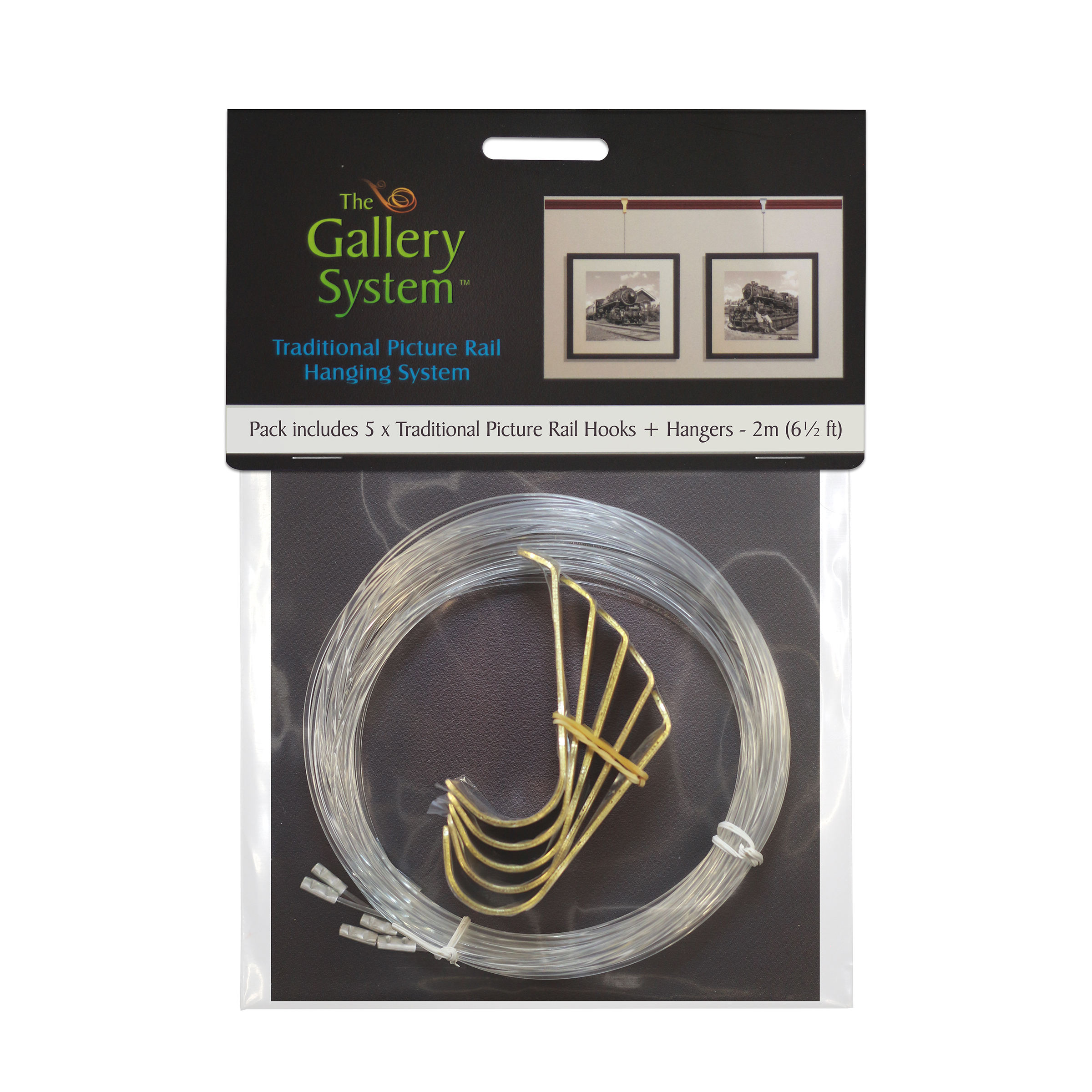 Heavy, solid brass picture rail hooks give a traditional look. Combined with EITHER stainless cable or Clearline hangers and adjustable hooks the system functions as a modern system. The improved design of the Traditional Picture Rail Hook positions the art much closer to the wall. This means the art will sit at the correct angle rather than leaning too far forward as they do with old fashioned picture rail hooks. The picture rail hooks are clear coated to prevent tarnishing.